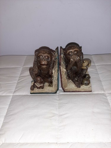 NO EVIL MONKEY BOOKENDS-- HEAR NO EVIL, SPEAK NO EVIL Vintage on the knee of the hear no evil there us an imperfection.