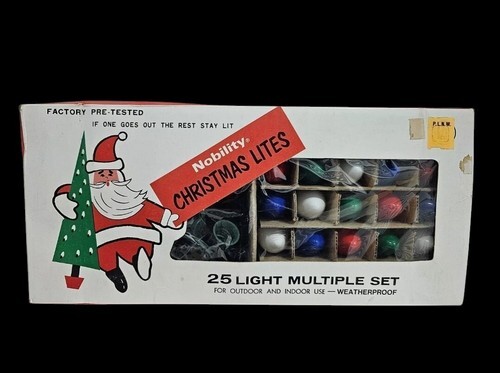 - Nobility Christmas Lites 2 Sets Complete 25 Light Strand w/Box Vintage WORKING