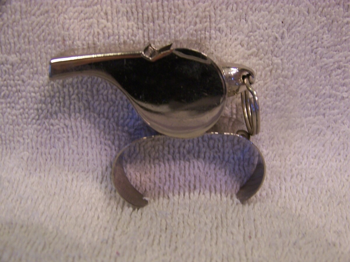 - NOBLE METAL WHISTLE, REFEREE, POLICE, DUAL FINGER HANDLE, JAPAN, RUBBER BALL