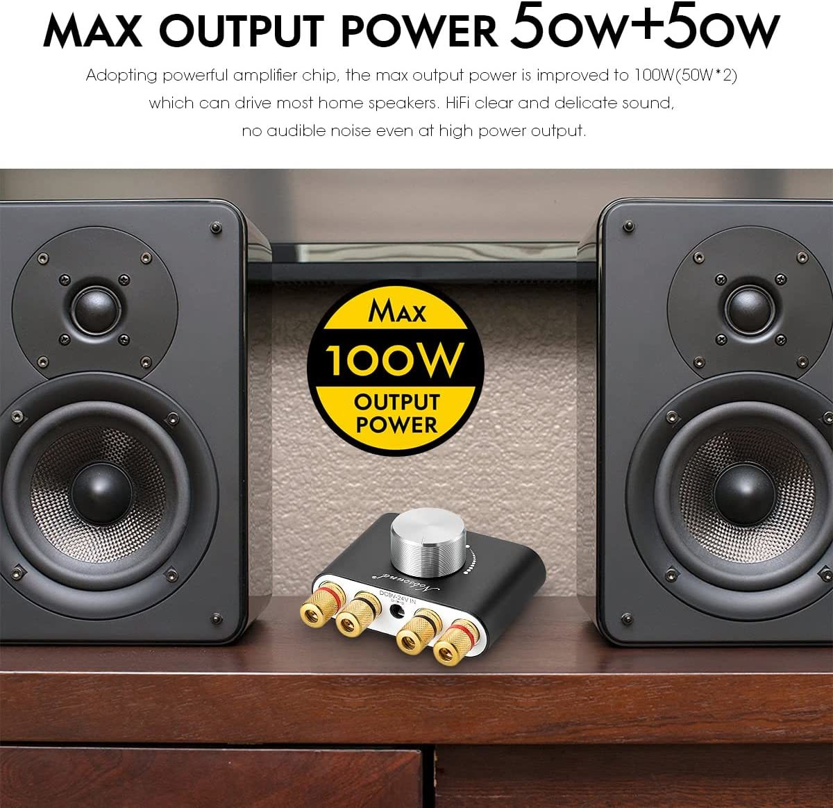 This is Nobsound's new power amplifier in 2022. Based on our previous product, we enhance its output power and improve its functionality, while still keep its mini size and elegant design. Despite its mini size(can be hold with one hand), the output power is improved to 100W(50W*2) with the upgraded chip. You will be amazed by its output power compared to its size when you see it. Supporting AUX/USB/Bluetooth input. You can enjoy your music in different ways. The Bluetooth function is also upgraded to 5.0. Now it is more stable and faster. We need to mention that with the USB input, music can be played losslessly(Like connecting with a computer. By the way, you don't need to install a driver). You will be surprised by the sound quality. Prompt and courteous customer service. If you met any troubles or had any questions, please feel free to contact us.