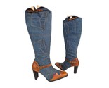 - Noel I LOVE NY Denim Blue Jean Brown Leather Dress Boots Pockets Buckles Sz 8.5