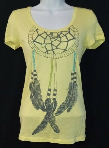 - Nollie The Basic Tee Yellow Short Sleeve Tee Feather Dream Catcher Size XS NWOT
