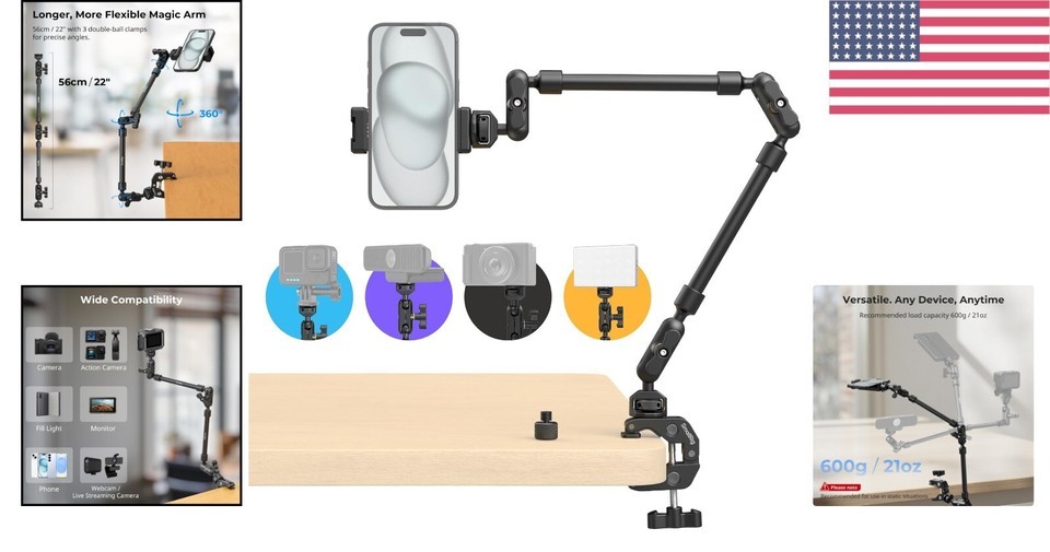 - Non-Slip 22" Magic Arm - Perfect for Overhead Shots & Streaming Equipment