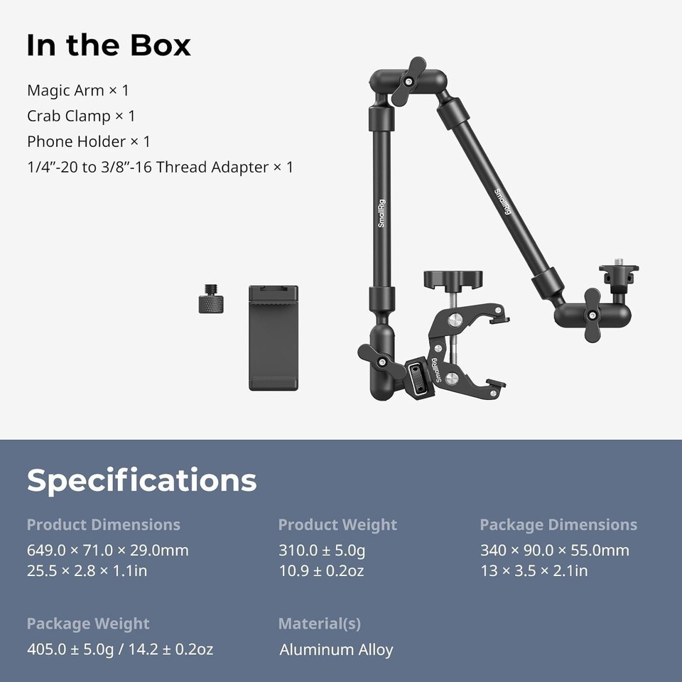 Length Flexibility: This 56cm/22" arm is longer than typical magic arms, with an impressive load capacity of 600g/21oz.