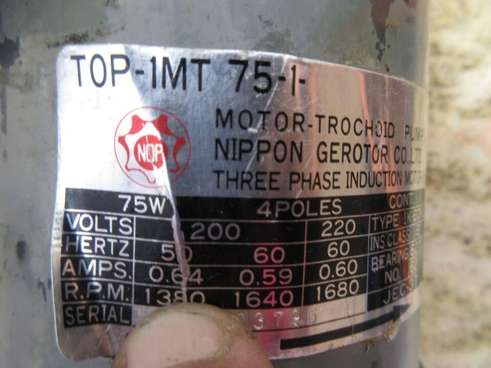 - NOP NIPPON TROCHOID MOTOR TOP-1MT 75-1 IMT PUMP TOP-12MA IK-ECKL CINCINNATI CNC