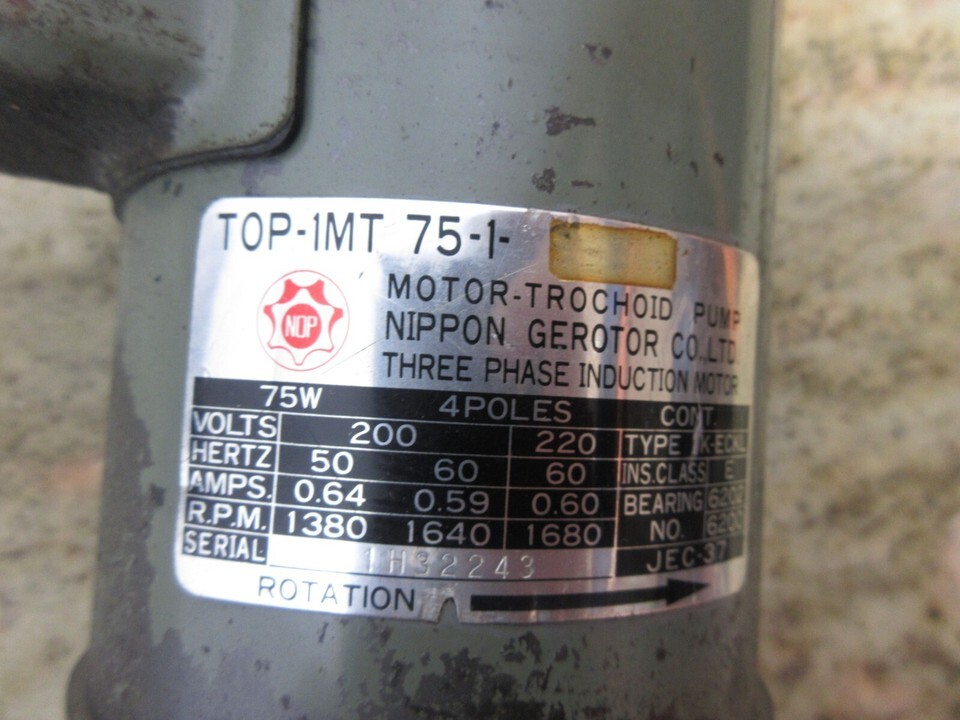 NOP NIPPON TROCHOID PUMP MOTOR TOP-1MT 75-1 75W 4POLES TOP-12 MA 1B IK-ECKL