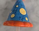 The Nora Fleming Mini Party Hat is a rare and retired piece with original markings. This ceramic platter shaped party hat features a glossy multicolor finish with dotted pattern, making it a unique addition to your home decor. Perfect for all occasions, this mini party hat is a charming and whimsical touch to any dining or entertaining space. Display it on a table or shelf to add a festive and playful element to your home.