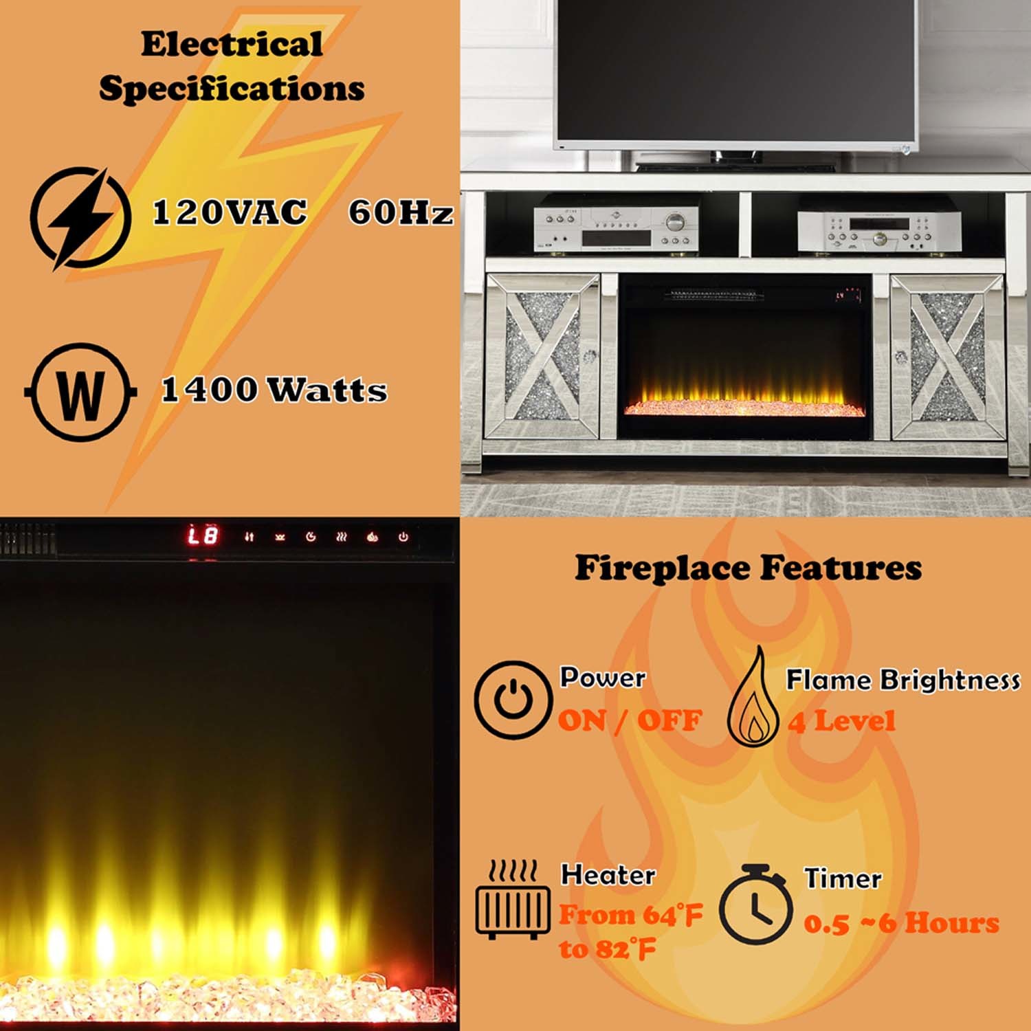 - Noralie 59" TV Stand w/Fireplace, Mirrored & Faux Diamonds