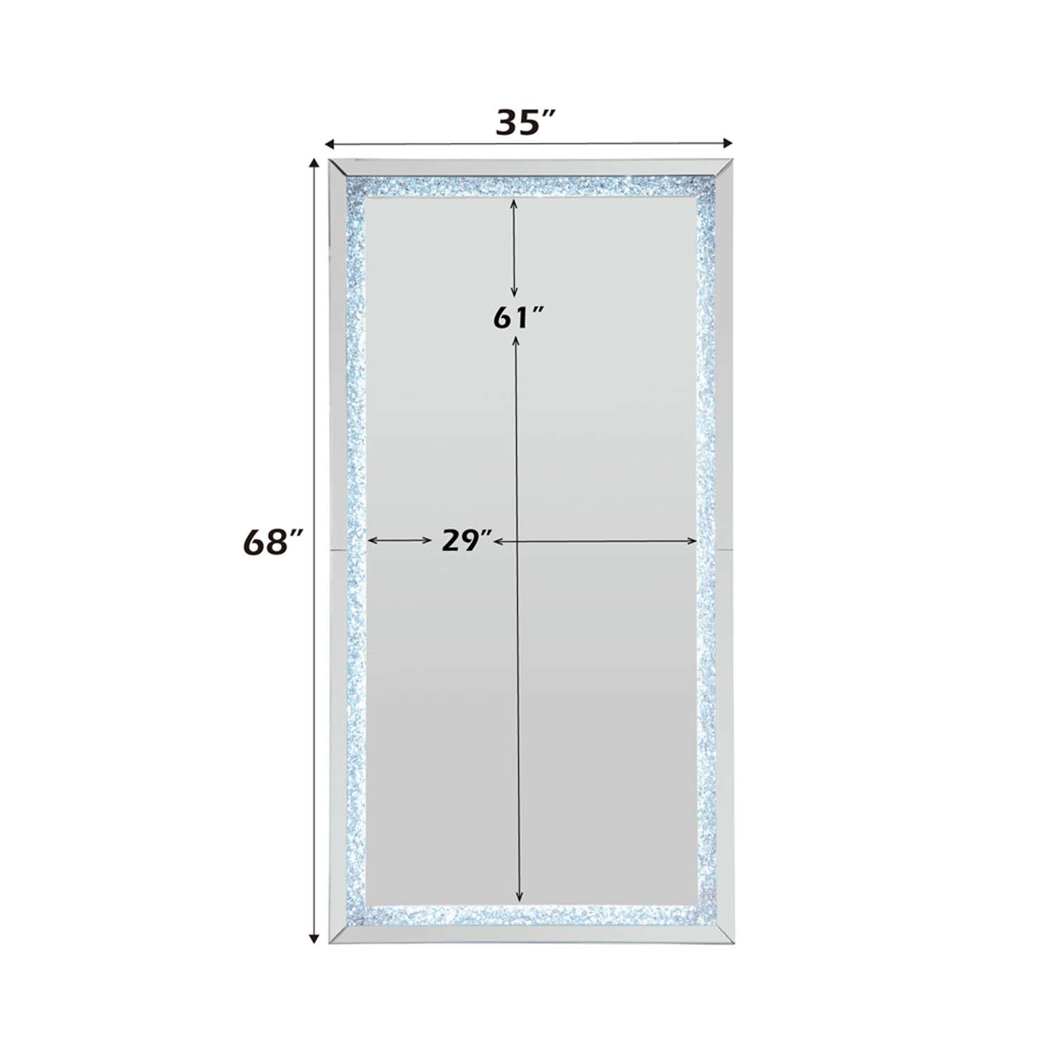 - Noralie Floor 35"x68" Mirror, LED, Mirrored & Faux Diamonds