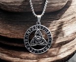 Embrace the ancient symbolism of the Nordic Rune Triquetra Pendant. This striking necklace features a detailed Triquetra design encircled by Norse runes, representing unity, protection, and the connection between past, present, and future. Made from high-quality metal with intricate craftsmanship, it?s perfect for fans of Celtic and Norse mythology. A powerful talisman or a unique gift for those drawn to ancient symbols. Includes a durable chain for everyday wear.