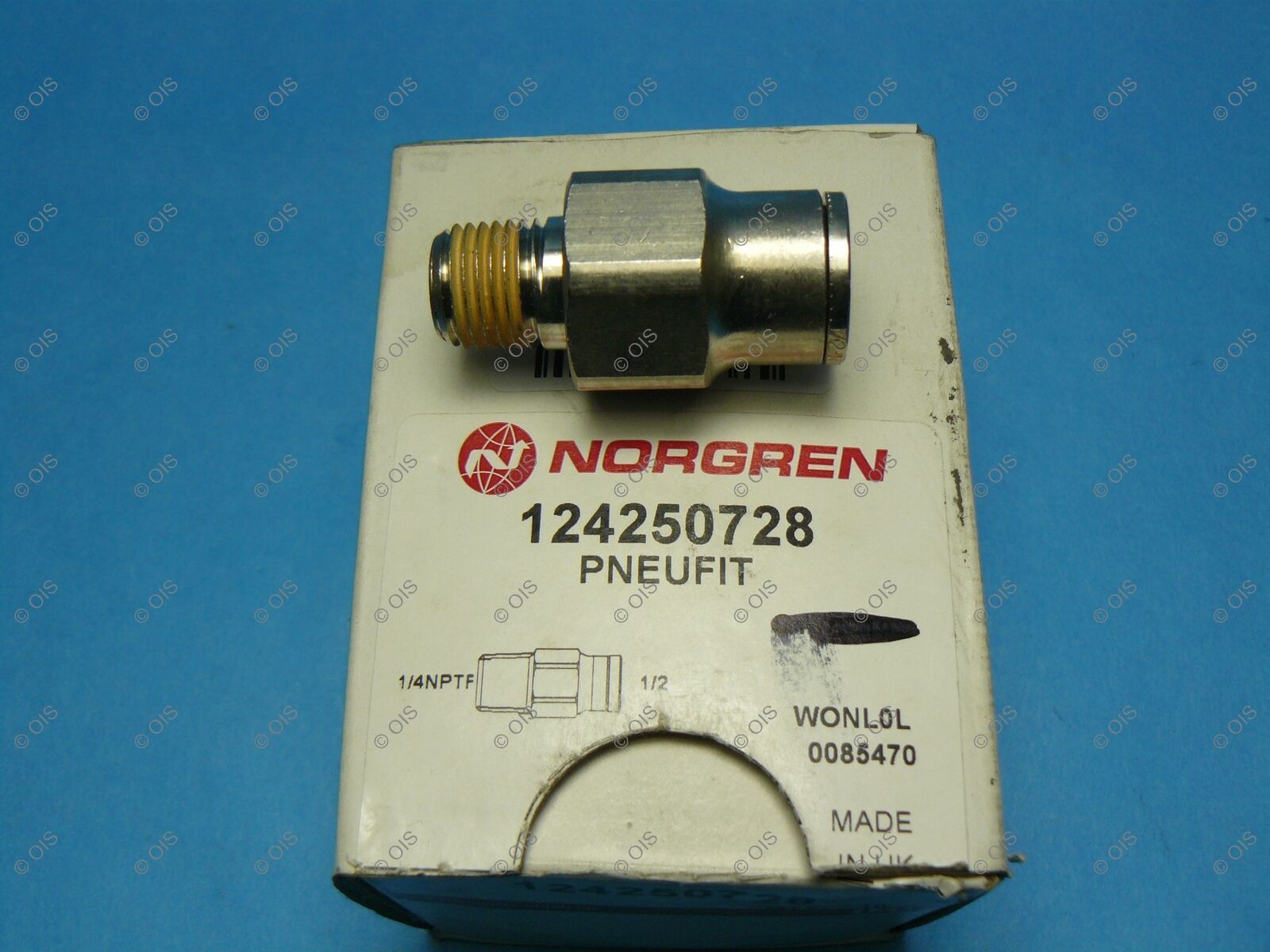 - Norgren 12-425-0728 Push To Connect Adapter Fitting 1/2" x 1/4" NPT Male Brass