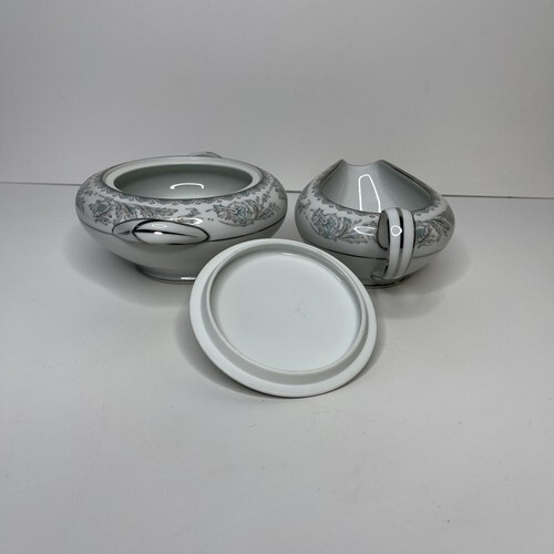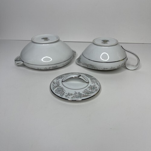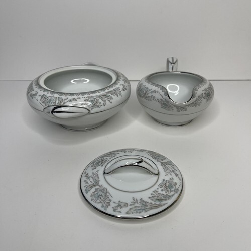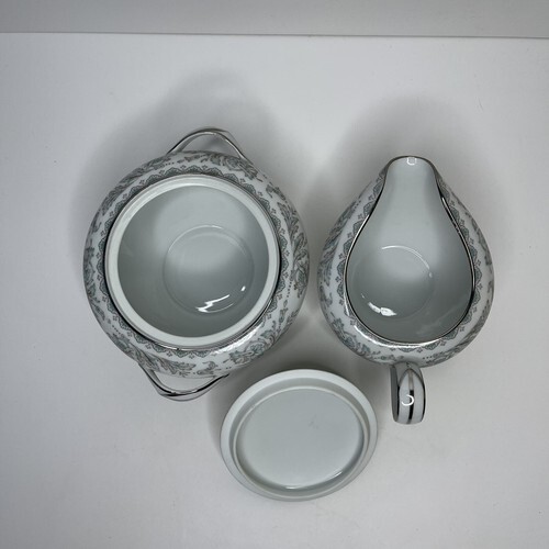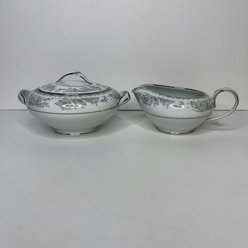 - Noritake Belmont 5609 China Creamer & Sugar Platinum Silver