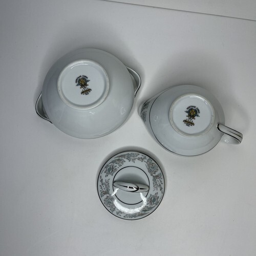 Noritake Belmont 5609 China Creamer Sugar Plates Platinum Silver