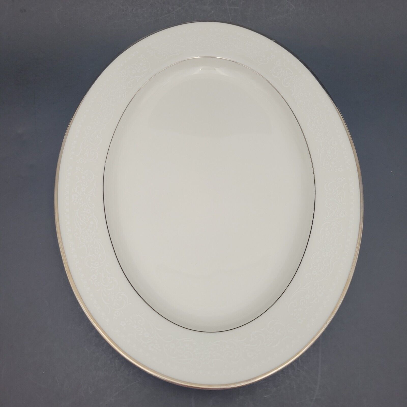 - Noritake Sorrento 11" Oval Serving Platter 7565 White with detailed rim Flowers