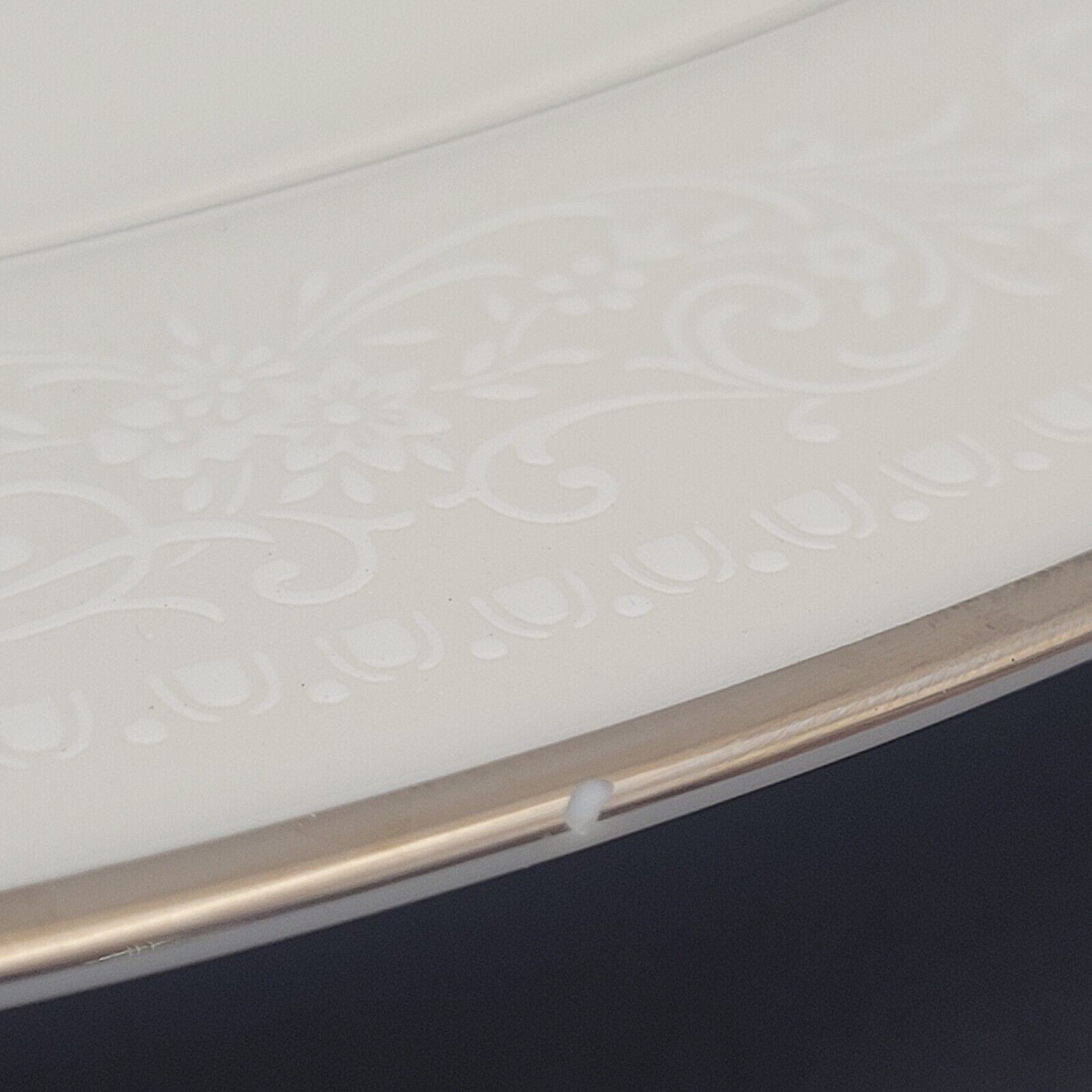 At 11 inches, this platter is the ideal size for serving appetizers, main courses, or desserts. The Sorrento pattern is timeless and versatile, making it a great addition to any collection. This Noritake platter is sure to impress your dinner guests and make your meals even more memorable.