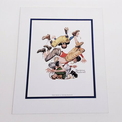 - Norman Rockwell Art Print Offset First Down Football Pile Up 11x14 Sports ART