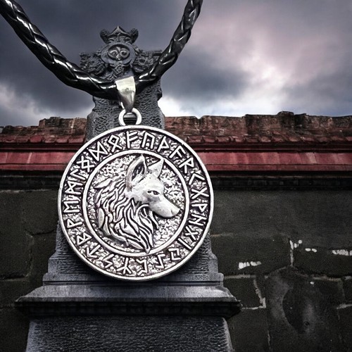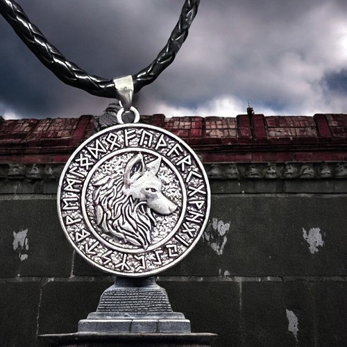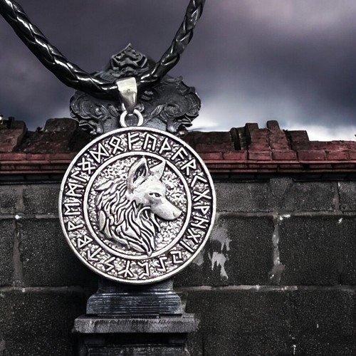 - Norse Wolf Pendant Necklace with Runes - Symbol of Strength and Protection