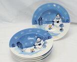North Crest Home Winter Valley Ice Fishing Snowman Rim Soup Bowls 9" Lot of 5