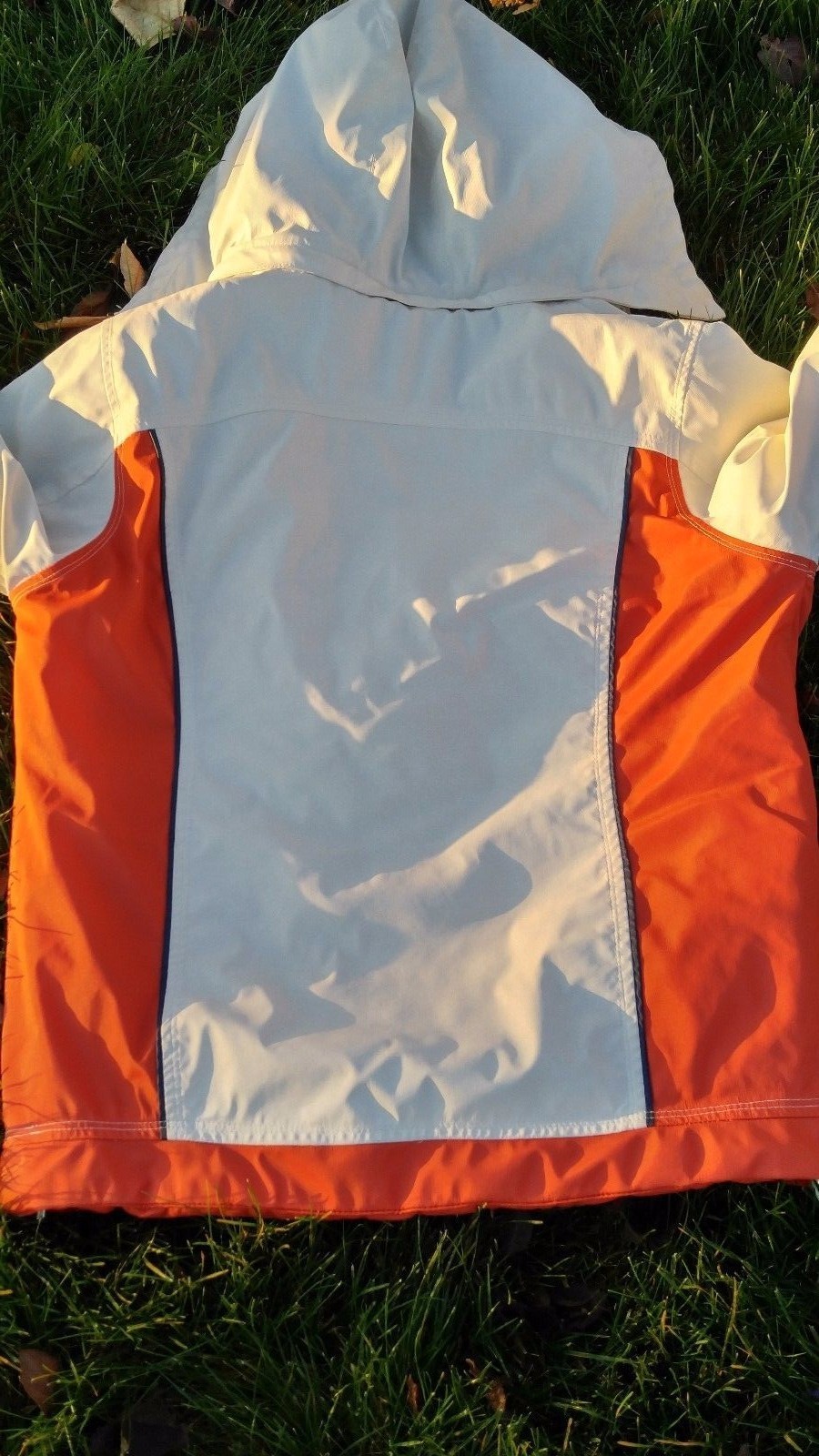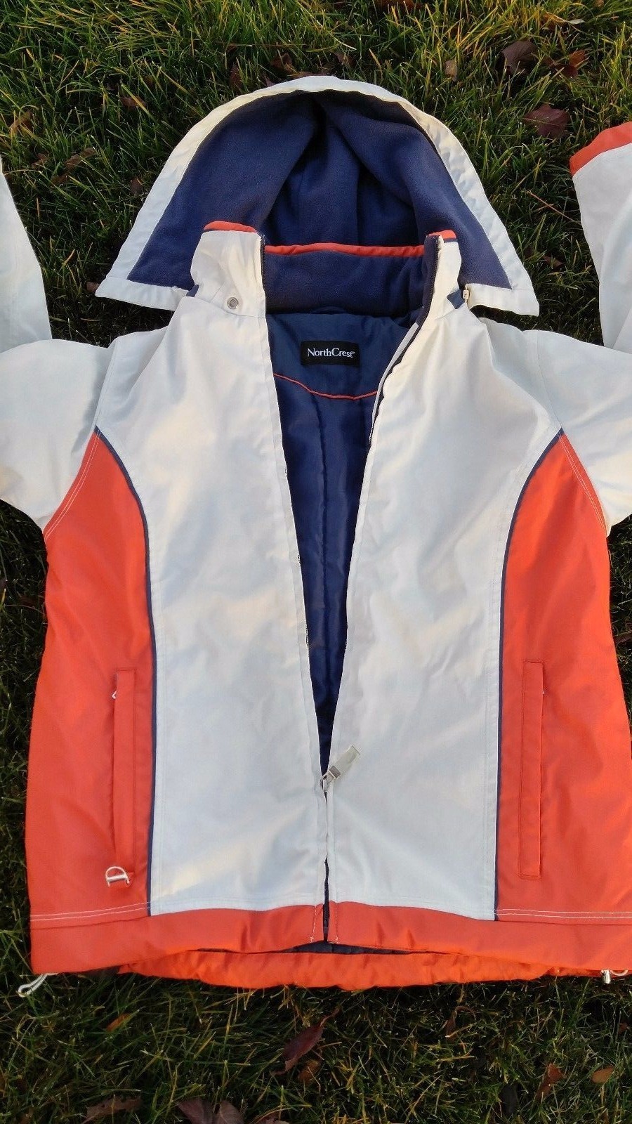 Amazing Condition North Crest Women's Orange, White, Blue - Full zip, Removable hooded jacket. Size Small. Zippered hand pockets. 4 pockets total.