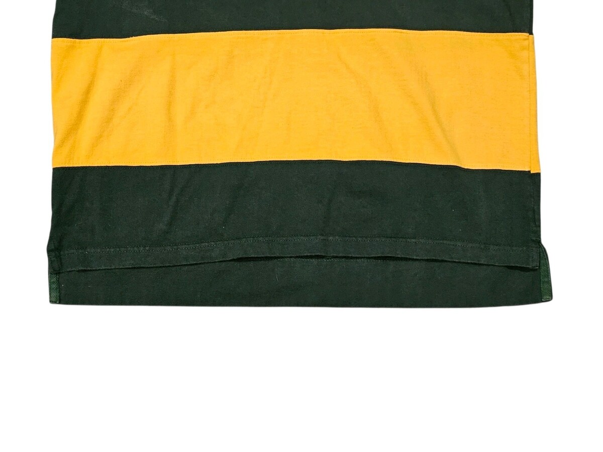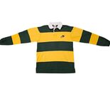 The North Dakota State University Bison Red Oak Sportswear LS Rugby Polo in size medium is an officially licensed shirt featuring the team's colors of yellow and green. Made by Red Oak, this polo is designed for men and is perfect for showing support for the North Dakota State Bison during the regular football season. Made in India, this shirt is a great addition to any fan's collection and is sure to make a statement both on and off the field.