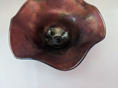 Piatto Da Caramelle In Vetro Iridescente Viola Fenton Con Adesivo Alto 5 Pollici
