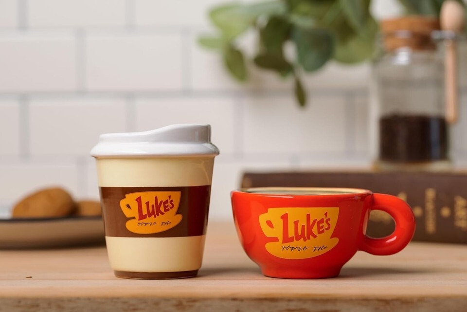 Detailed design resembling a coffee mug and cappuccino cup from Luke's Diner.