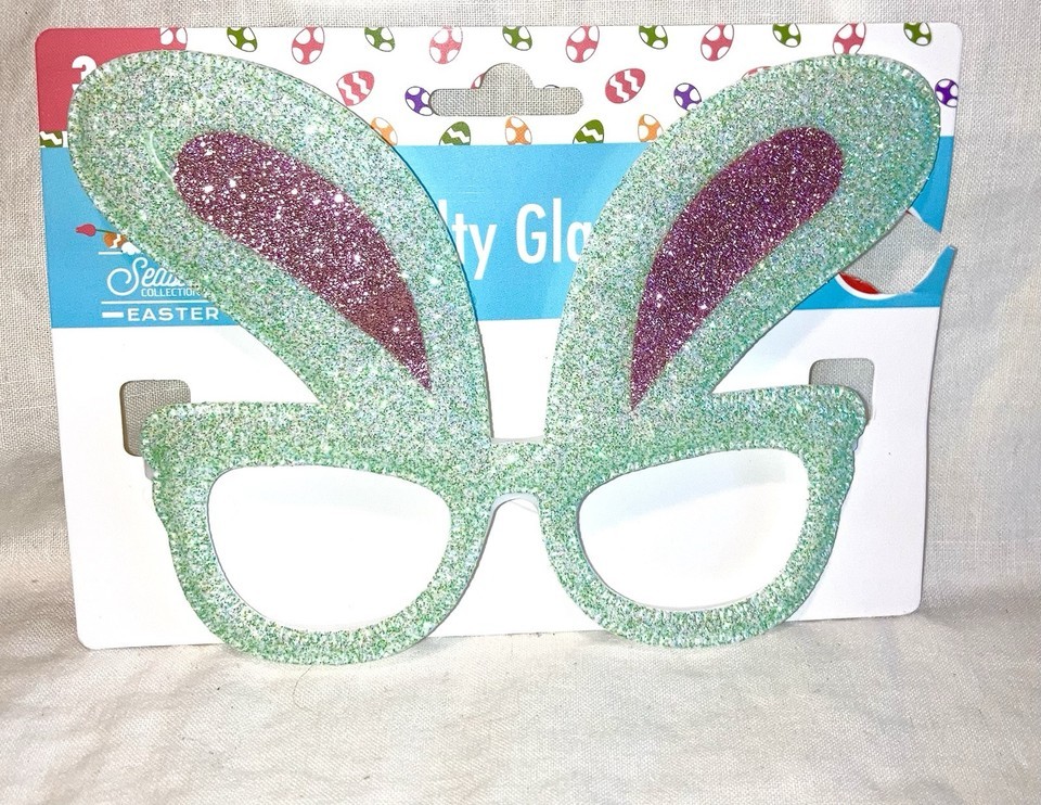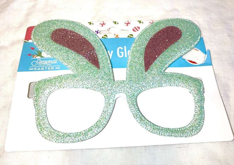 - Novelty Glass frames Easter Bunny Ears Dress Up No Lenses Green and Pink Sparkle