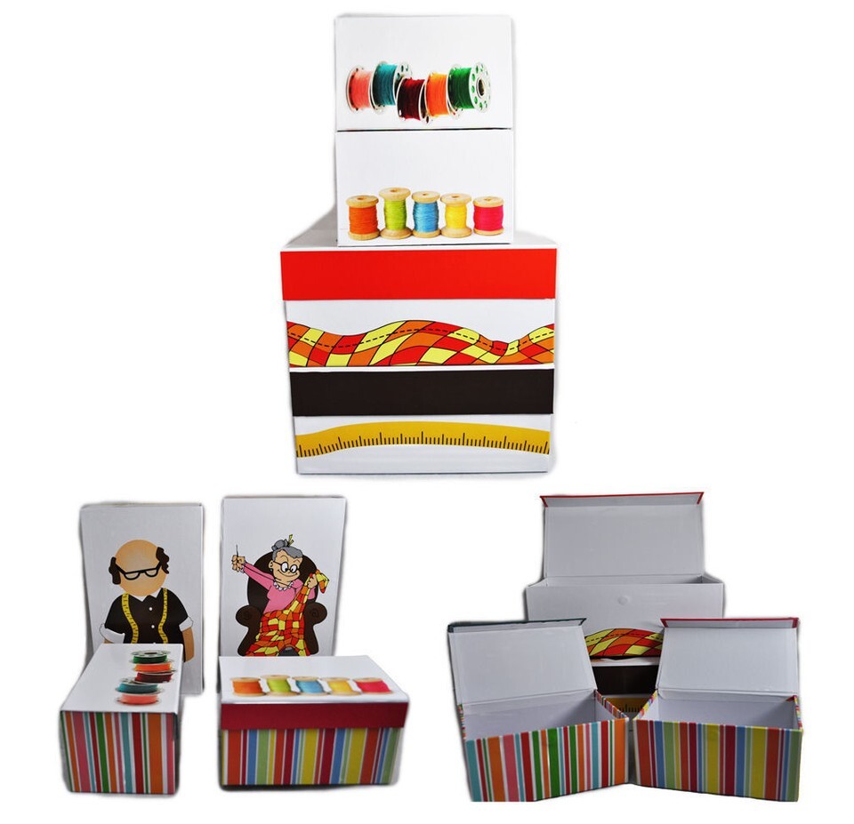 Keep all of your thread and sewing notions in these fun unique sewing storage boxes. These sewing themed boxes feature a Tailor, a Quilter, Spools of thread, and Pre-wound bobbins all made for your storage needs.