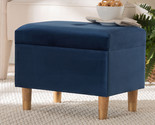 Features: Modern Storage Ottoman Constructed from an Engineered Wood Frame with Firwood legs Lift-top opens to reveal a convenient storage compartment Button-tufted cushion adds classic charm Padded with foam and upholstered in velvet fabric Tapered wood legs provide excellent stability Set Includes: One (1) Ottoman