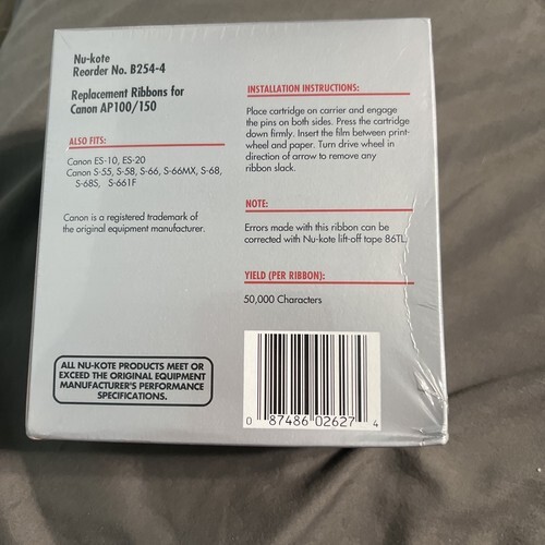 - Nu-kote B254-4 Canon AP 100/150 Typewriter Ribbon Cartridge NEW SEALED