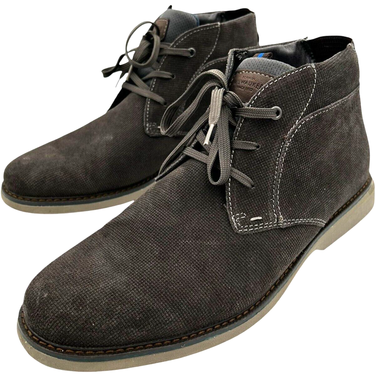 - Nunn Bush Men's Otto Plain Toe Chukka Grey Leather Water Resistant Boot size 12M