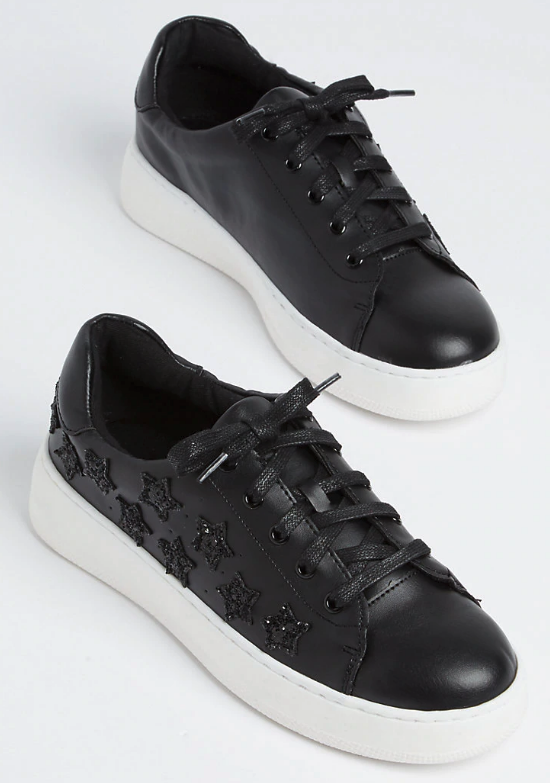 Questo e per una nuova coppia Rue21 Wild Diva Lounge Black Glitter Star Sneaker Shoe.