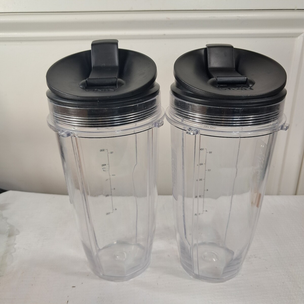 - Nutri Ninja Auto-iQ Blender single serve travel cups lids SET 2 part BL493 BL494