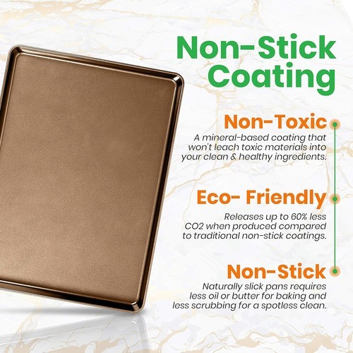 * NON-STICK COATING: The large cooking sheet pan features a non-stick coated layer surface that ensures quick, effortless food release and eliminates the need for butter, oil, or cooking spray; Makes tasty homemade baked goods slide out easily