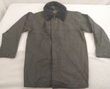 DEFECTS: THE PU COATING IS WEARING OFF IN A SPOT BOTTOM CENTER BACK ABOVE HEM LINE, ALSO SOME SCRATCHES ON BACK AND ARMS, LOOKS LIKE POSSIBLE GREEN PAINT IN FRONT FLAP OVER ZIPPER~PLEASE SEE PHOTOS