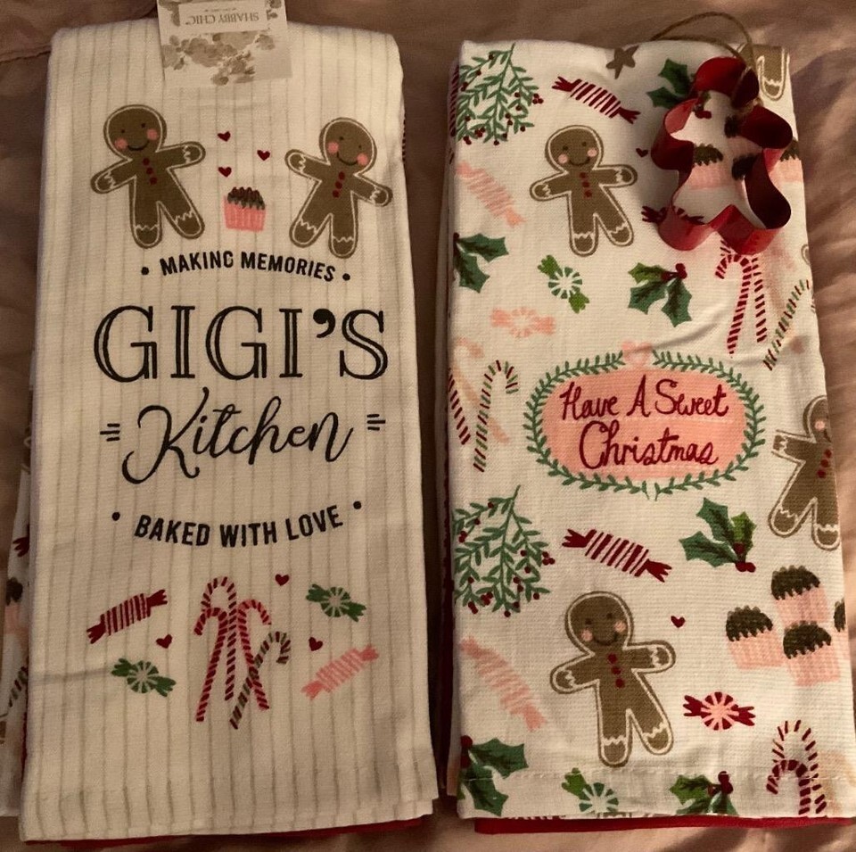 - NWT 4 PCE GIGI’S KITCHEN PINK GINGERBREAD MEN KITCHEN TOWEL SET + COOKIE CUTTER