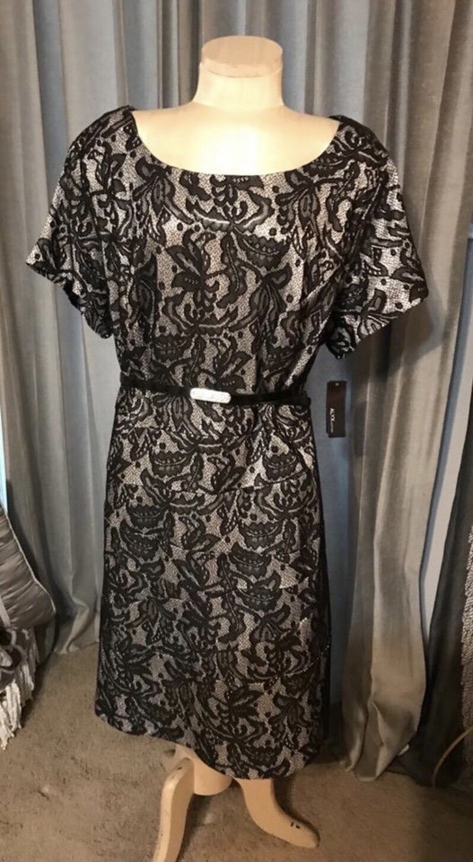 NWT STUNNING WOMENS COCKTAIL PARTY DRESS ?ALYX WOMAN? 22W BLACK WHITE LACE POLY