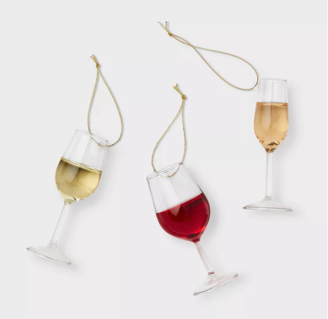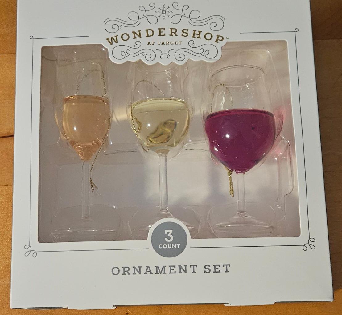 NWT Target Wondershop 3 piece Wine Glass Ornament Set