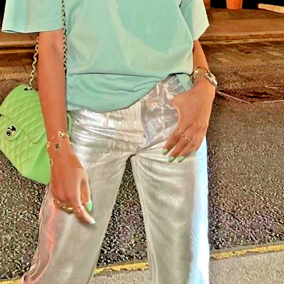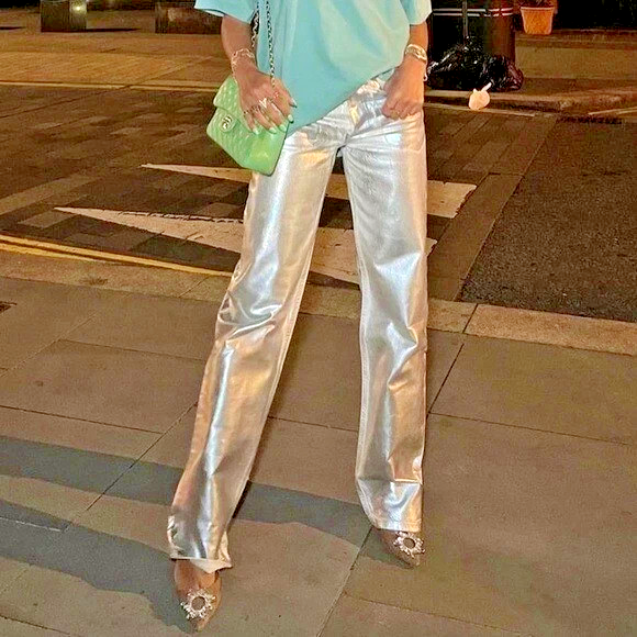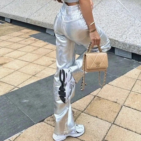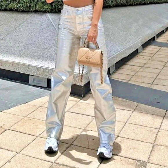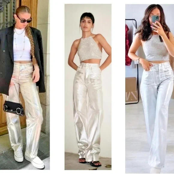 ZARA WOMAN NEW ZW THE BOY BOY TROUSERS SILVER METALLIC JEANS