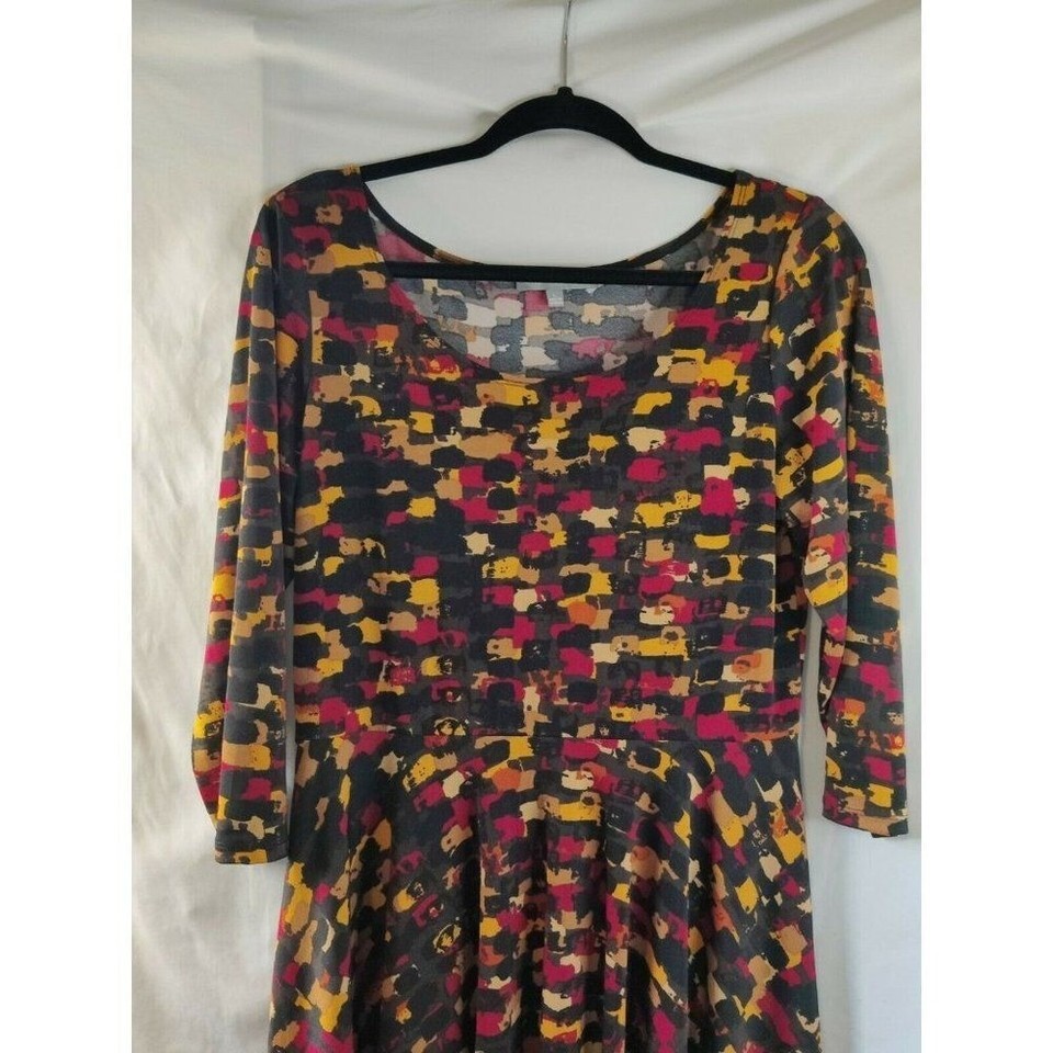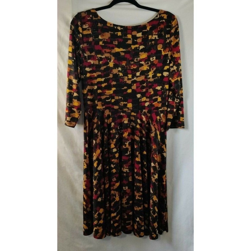 NY Collection 3/4 Sleeve Animal Print Scoop Neck Dress Multicolor Women's Size Large