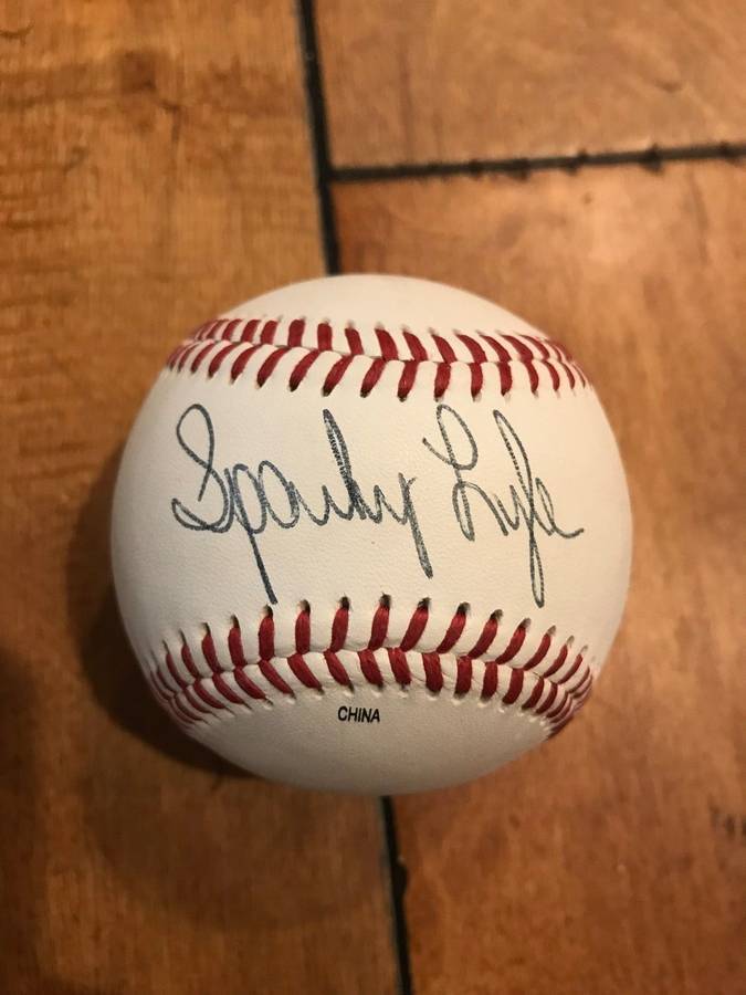 - NY YANKEES SPARKY LYLE SIGNED BAT, BALL, AND TRADING CARD WITH COA