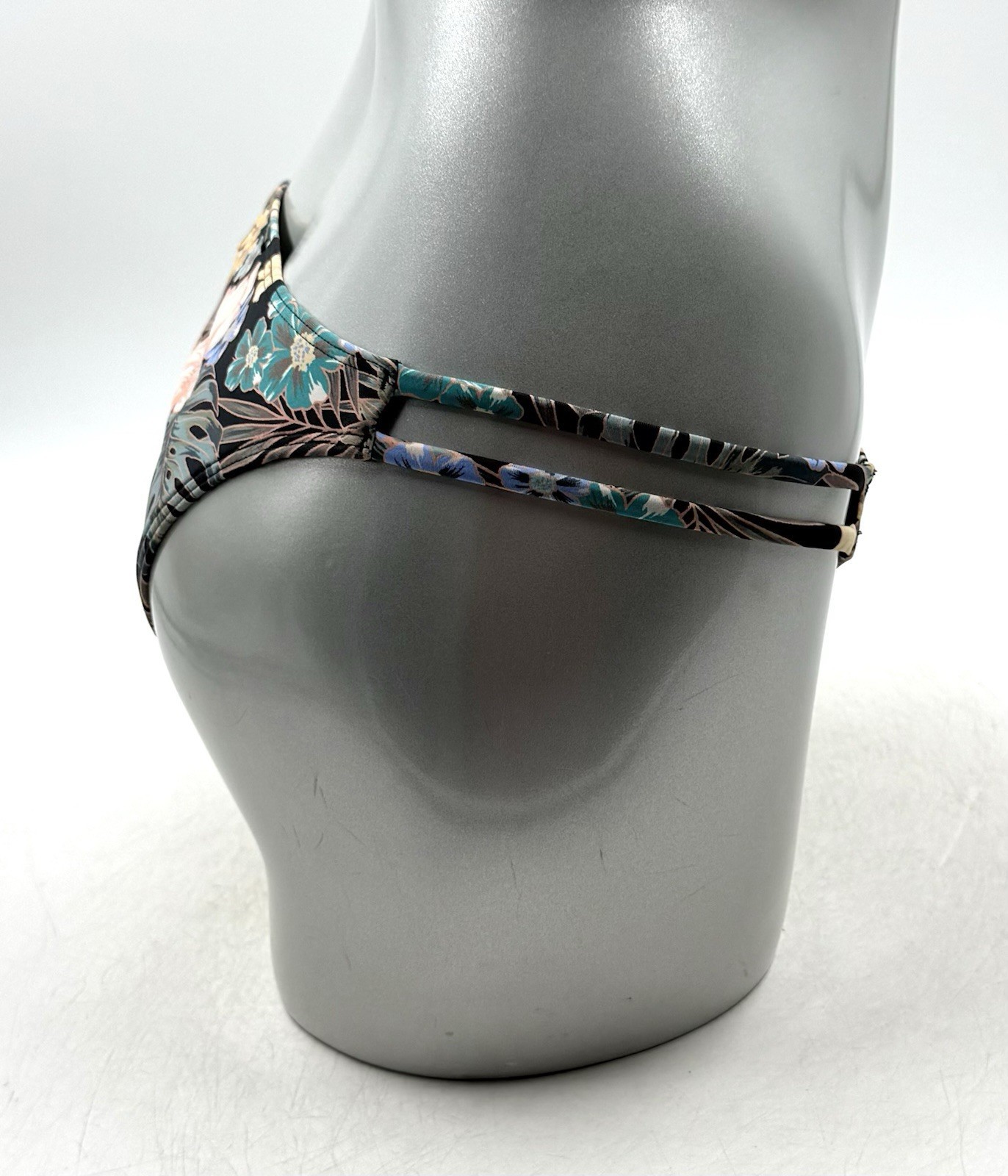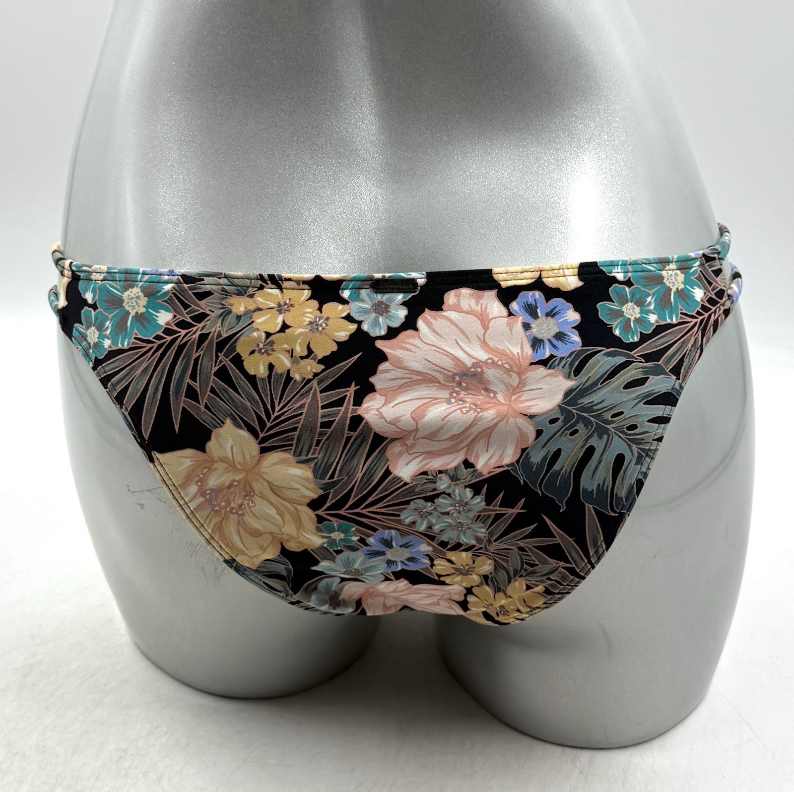 - O’Neill Swimsuit Bikini Bottoms Hipster Size Medium Black Gold Floral Womens