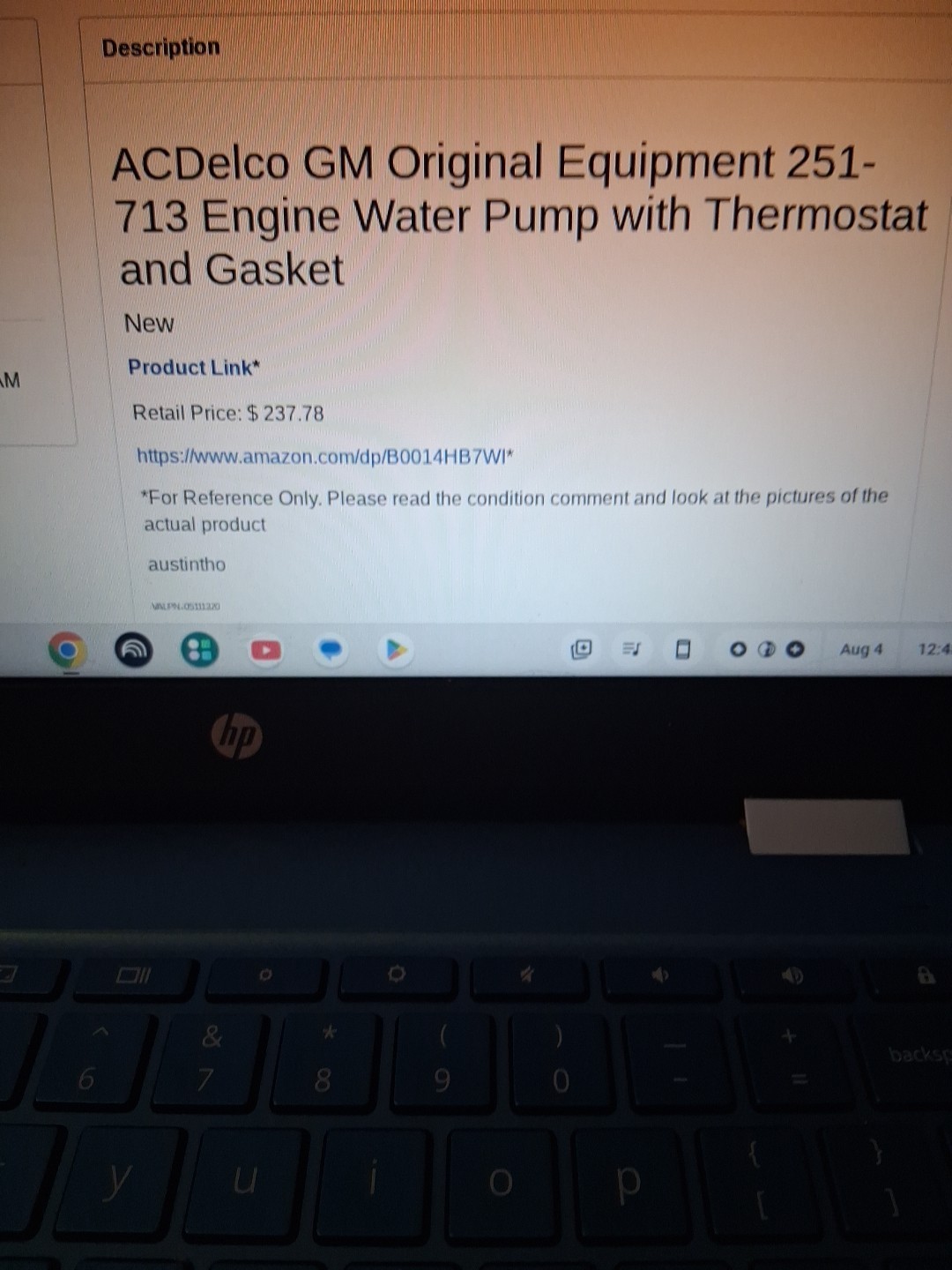 - OEM GM 12681417 19434033 Delco 251-713 Water Pump See Pics