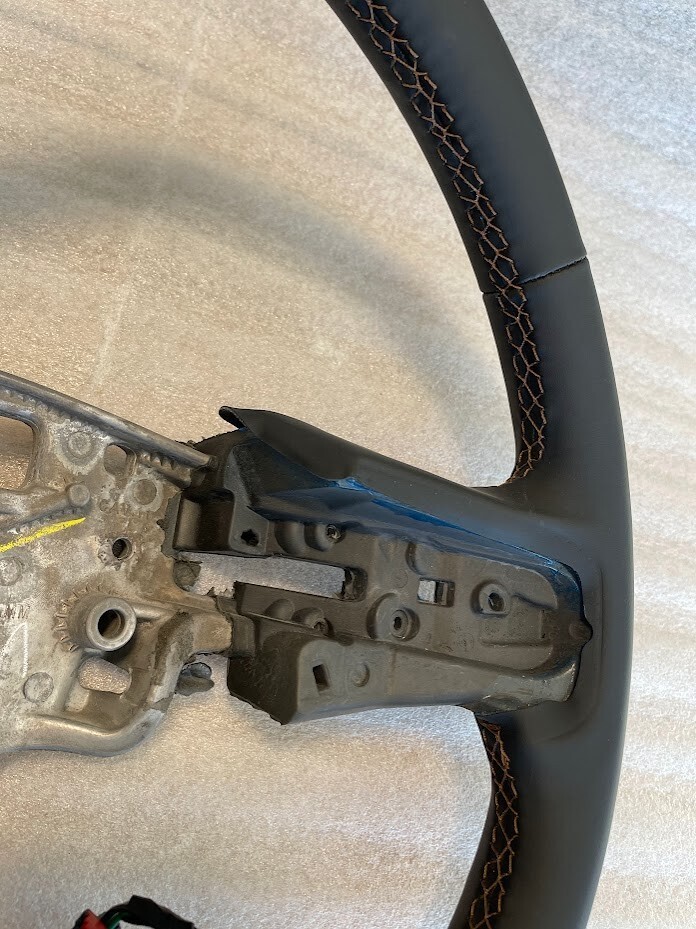 OEM original black leather steering wheel for some GMC trucks. AT4 khaki tan