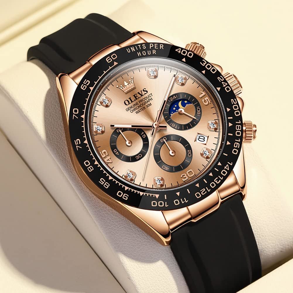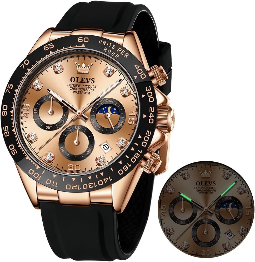 - OLEVS Watches for Men Business Diamond Moon Phase Male Watch Chronograph Fashion