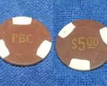 - ONE Clay $5 Poker Chip Pacific Beach Card Room Club Gambling San Diego Vintage