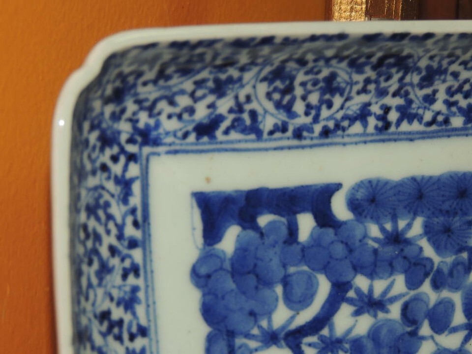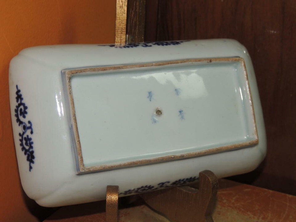 - ONE Japanese Dish/ Tray 8.25"x4.5 Blue White Arita Meiji 19th poss Fuki Choshun