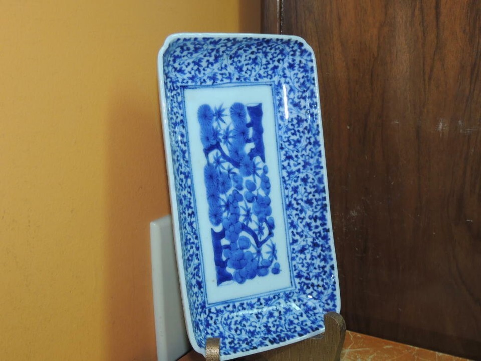 ONE Japanese Dish/ Tray 8.25"x4.5 Blue White Arita Meiji 19th poss Fuki Choshun