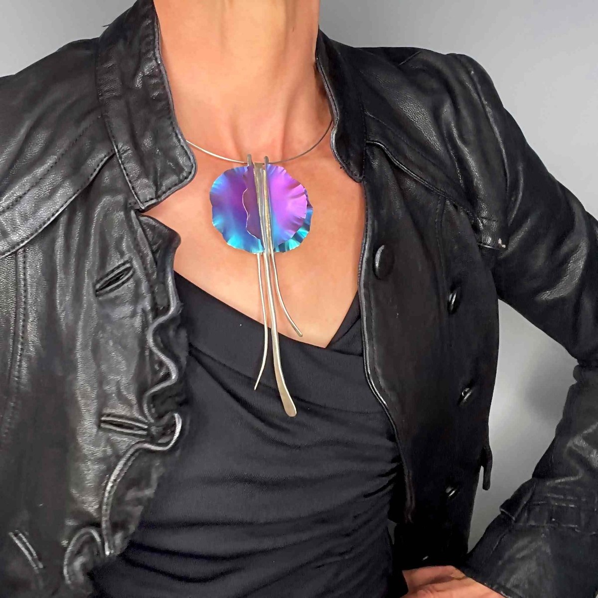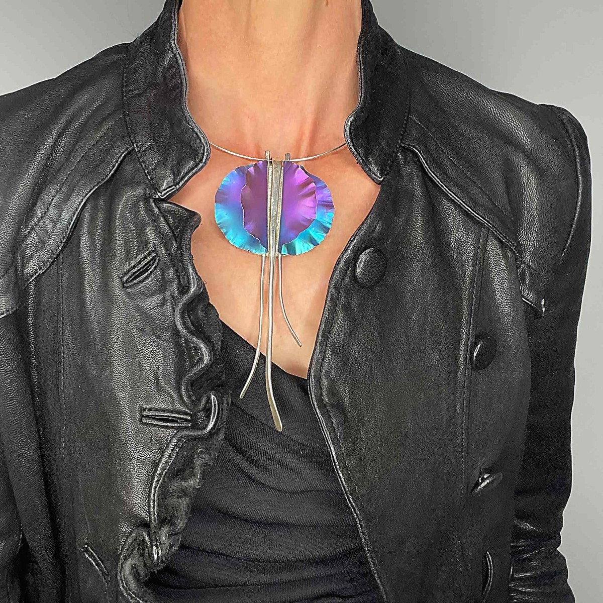 artisan anodized niobium and sterling silver pendant/ brooch clip