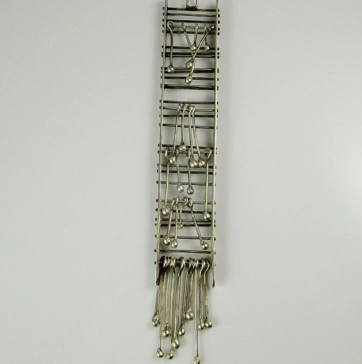 OOAK ! HUGE Long Kinetic Silver Pendant Necklace 1970s